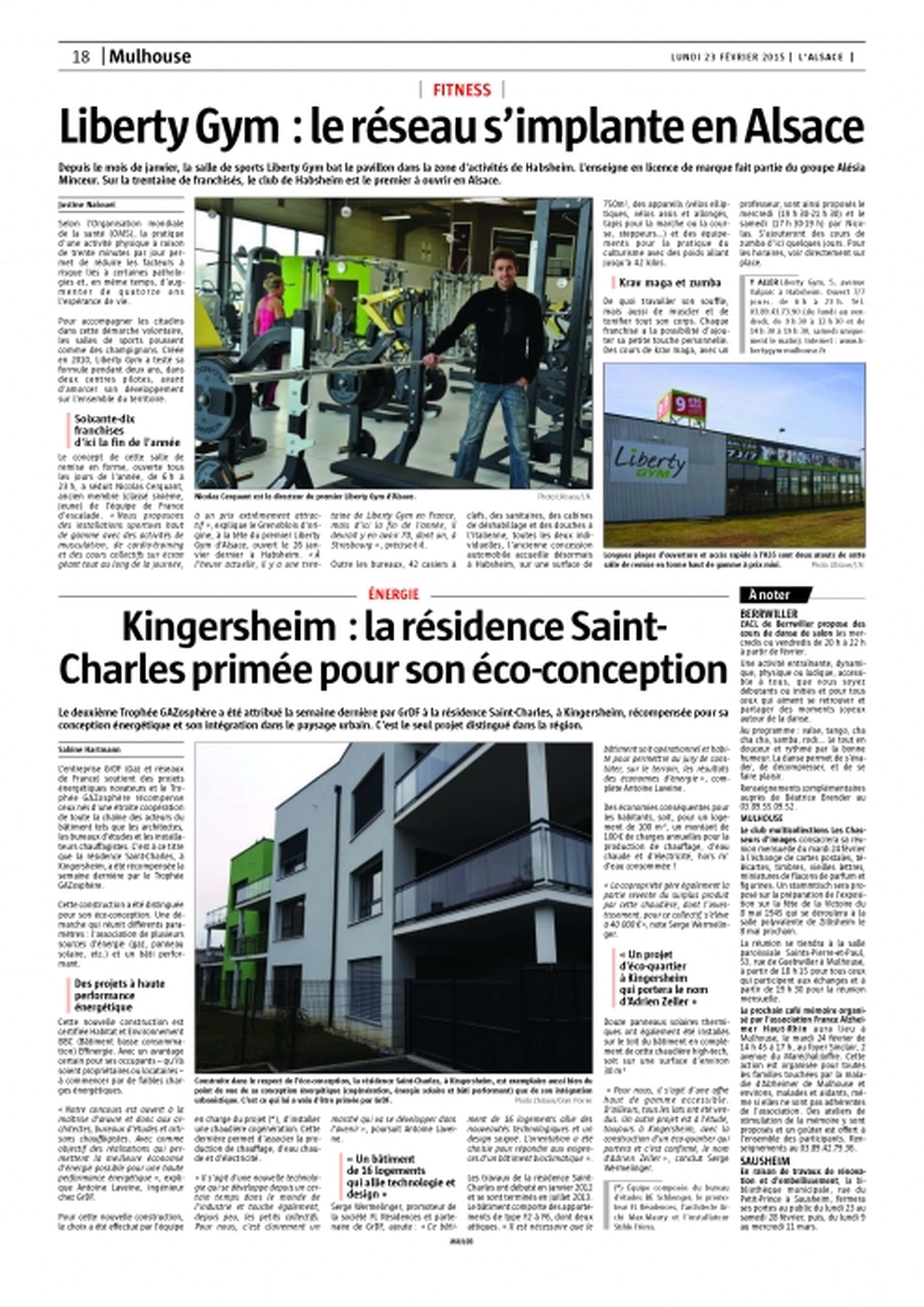 Le deuxième Trophée GAZosphère a été attribué la semaine dernière par GrDF à la résidence Saint-Charles de FL Résidences, à Kingersheim, récompensée pour sa conception énergétique et son intégration dans le paysage urbain.