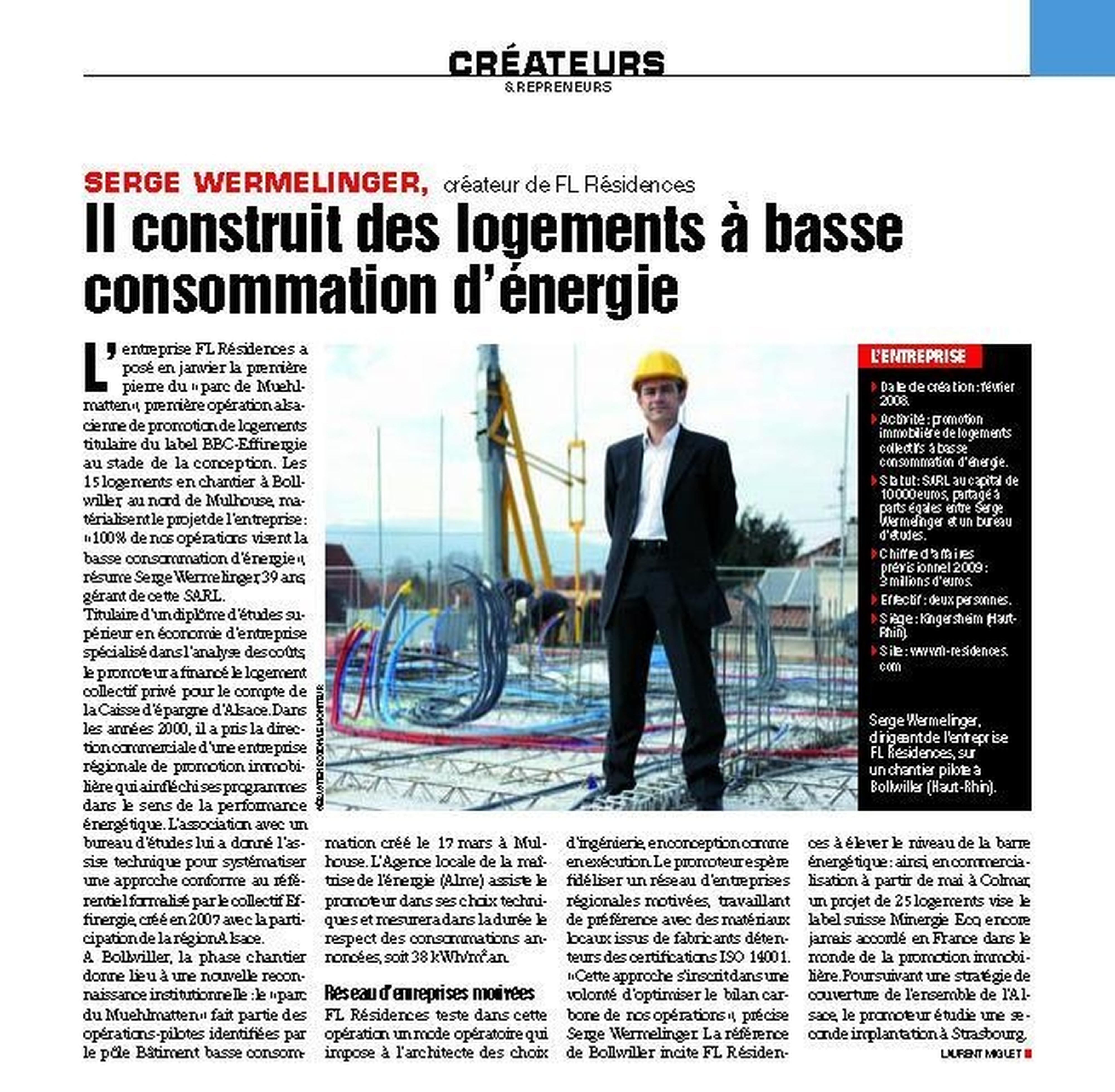 L'entreprise FL Résidences a posé en janvier la première pierre du « parc de Muehlmatten », première opération alsacienne de promotion de logements titulaire du label BBC-Effinergie ...