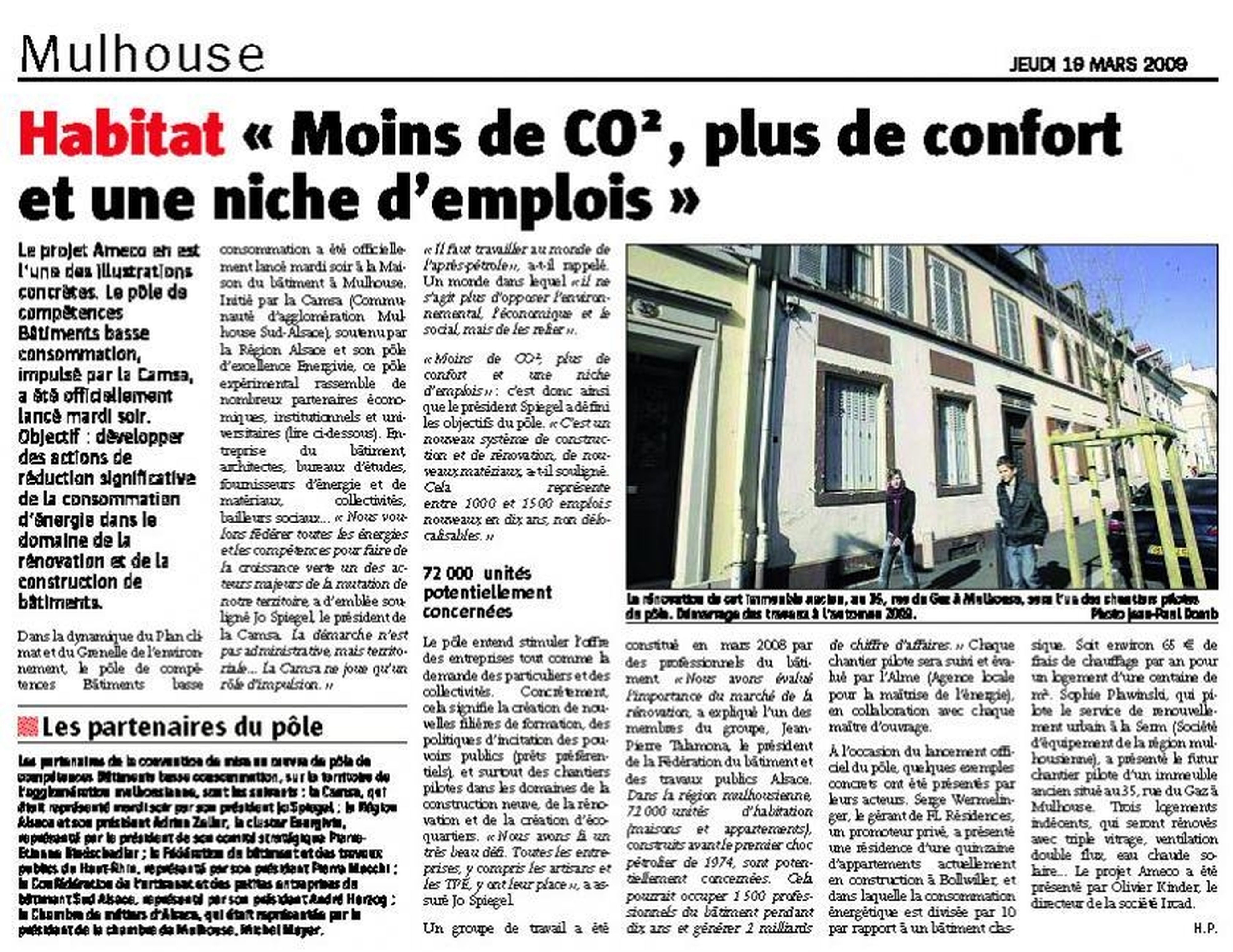 le gérant de FL Résidences, un promoteur privé a présenté une résidence d'une quinzaine d'appartements actuellement en construction à Bollwiller, et dans laquelle la consommation énergétique est divisée par 10 par rapport à un bâtiment classique. Soit environ 65 € de frais de chauffage par an pour un logement d'une centaine de m².